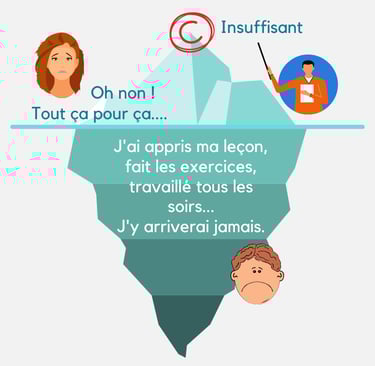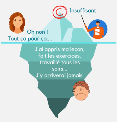 La note n'est que la partie émergée de l'iceberg. Elle est le reflet d'un instant T, et soumise à de nombreux paramètres (méthodologiques, émotionnels, environnementaux...). Pour ne pas laisser votre ado baisser les bras en criant à l'injustice, prenez le temps de vous poser pour l'analyser à deux. C'est le début de l'apaisement et de la reconquête.